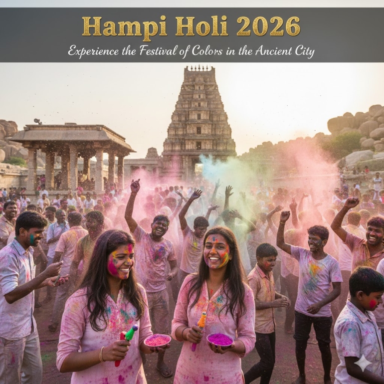 Hampi Holi 2026 will be celebrated on March 3–4, 2026, with Holika Dahan on the evening of March 3 and the main color celebrations unfolding on the morning of March…