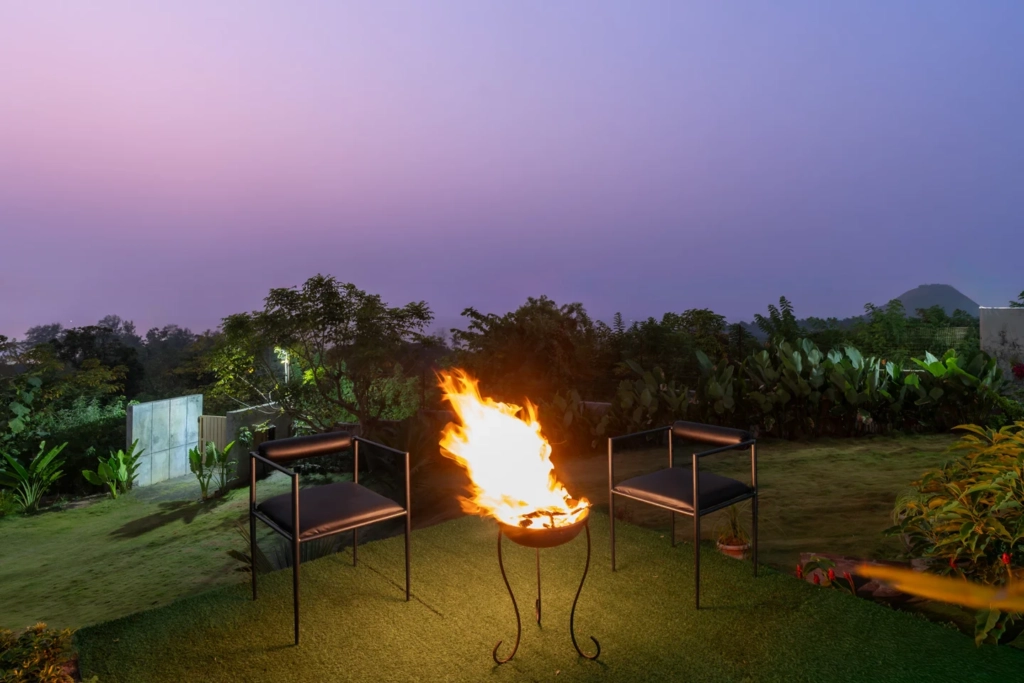 The interiors lean towards warm, earthy aesthetics rather than ornate luxury. It is a space that feels comfortable rather than formal—exactly what a group getaway needs.