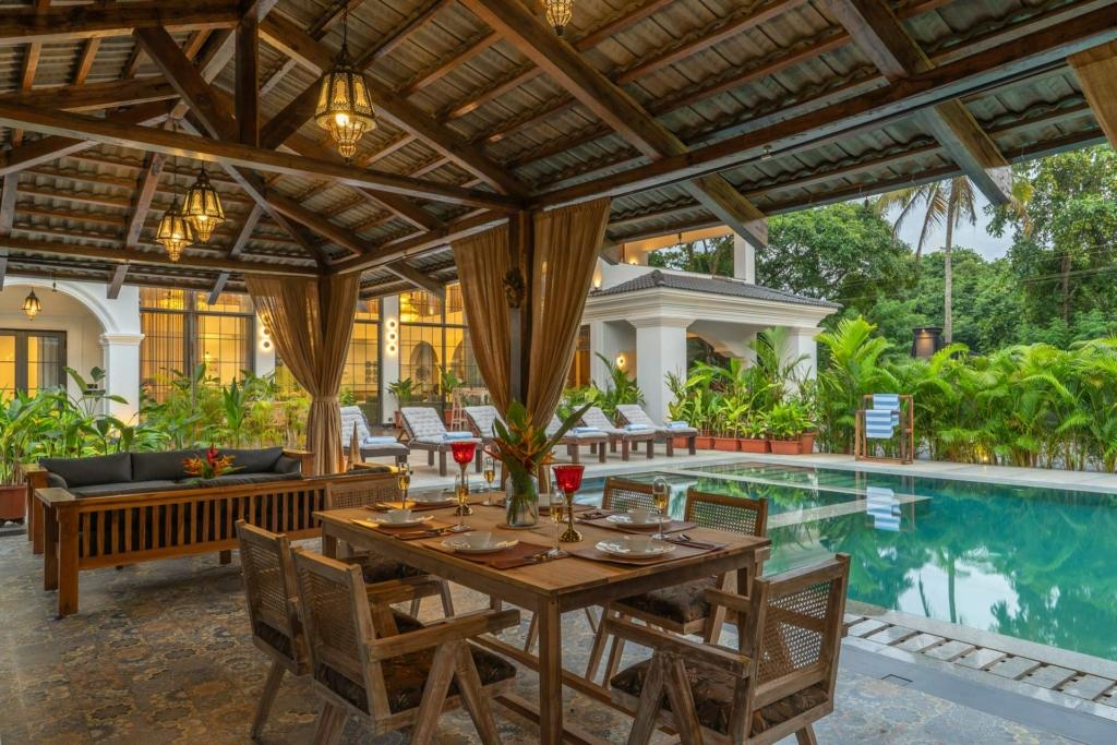 - Private candlelight dinners by the pool with Goan seafood or curated menus by a private chef