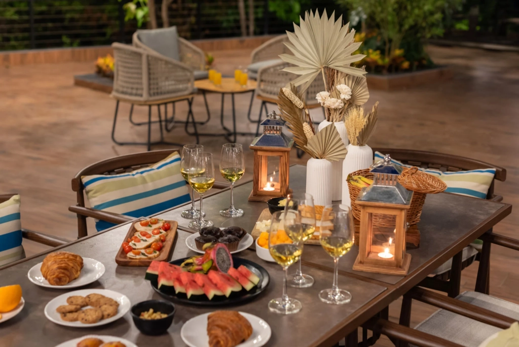 - Sunset wine or champagne setups on terraces and balconies