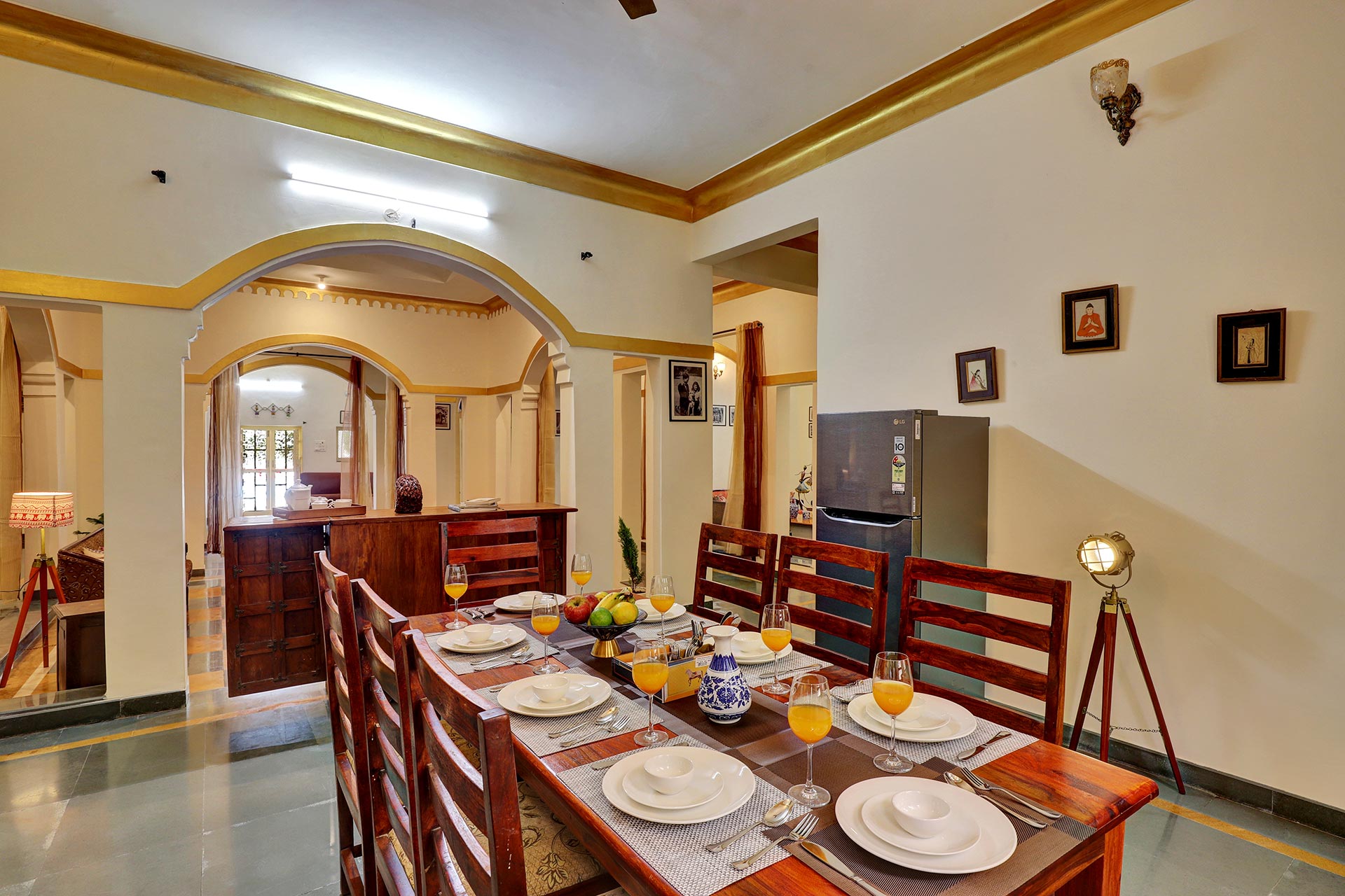 All vegetarian meals can be arranged in-house at an additional cost with prior notice of at least 48 hours. Guests may also order from nearby eateries if they wish to explore local flavours. The kitchen can be used for tea, coffee, instant noodles, and simple infant meals, but not for elaborate cooking.