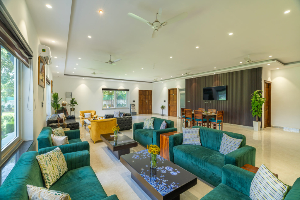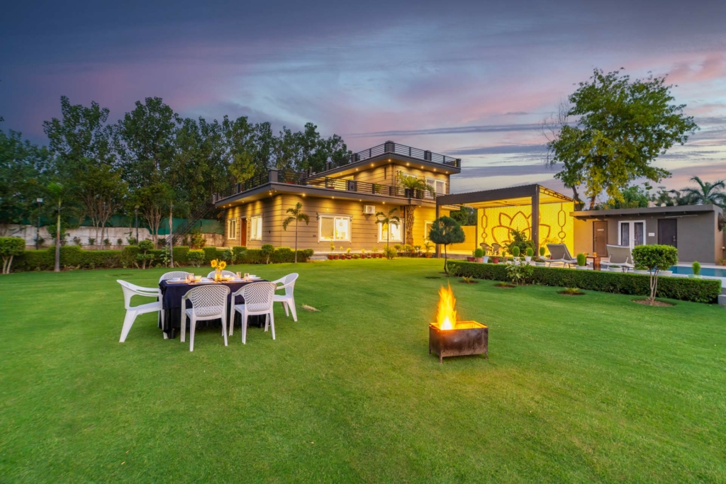 Set slightly outside the mela zone but still within easy reach of Surajkund, this villa offers a private pool, lush lawn, and BBQ area – ideal for group or family stays during the festival.