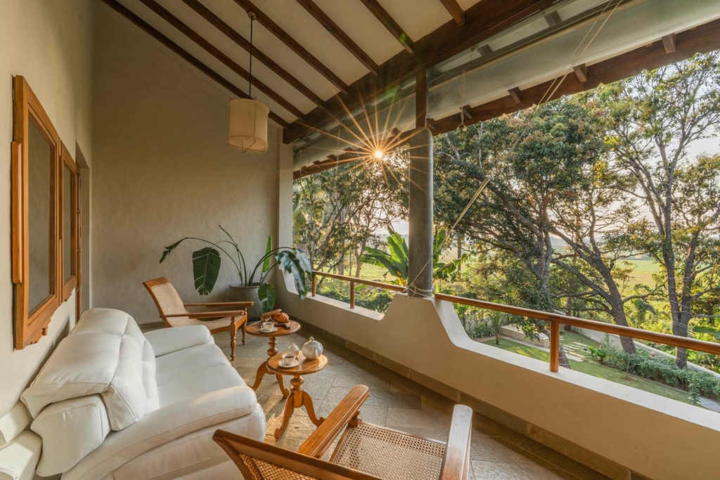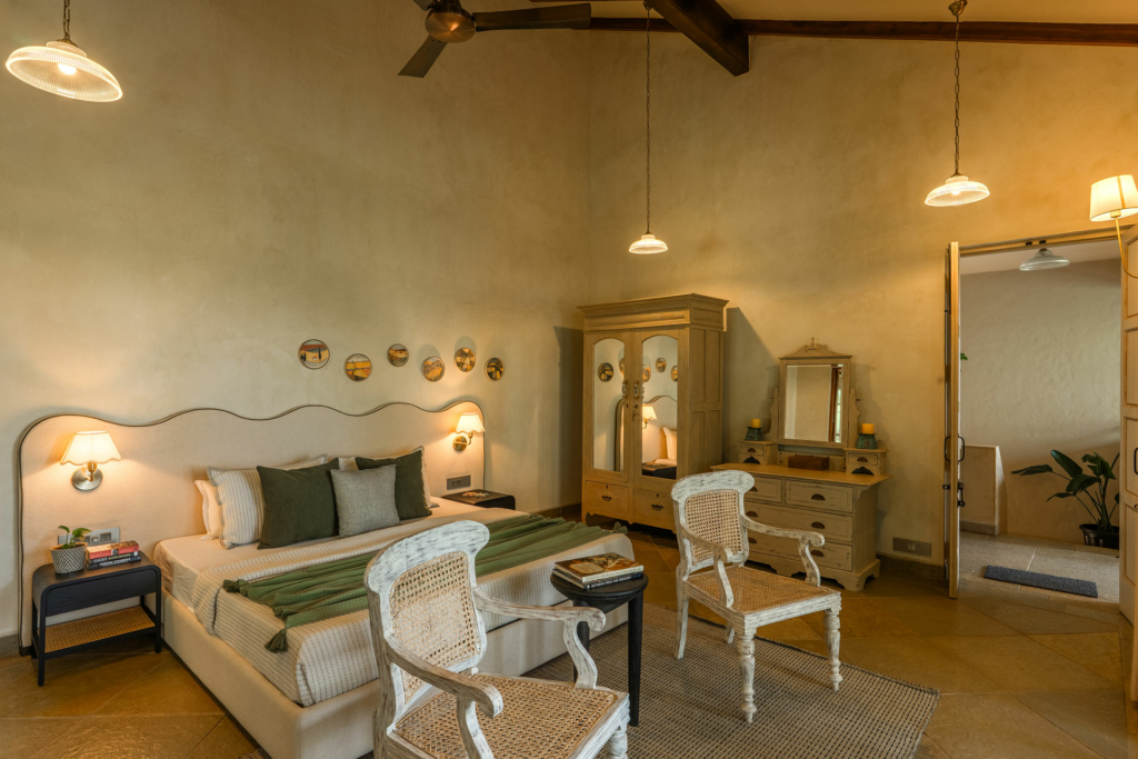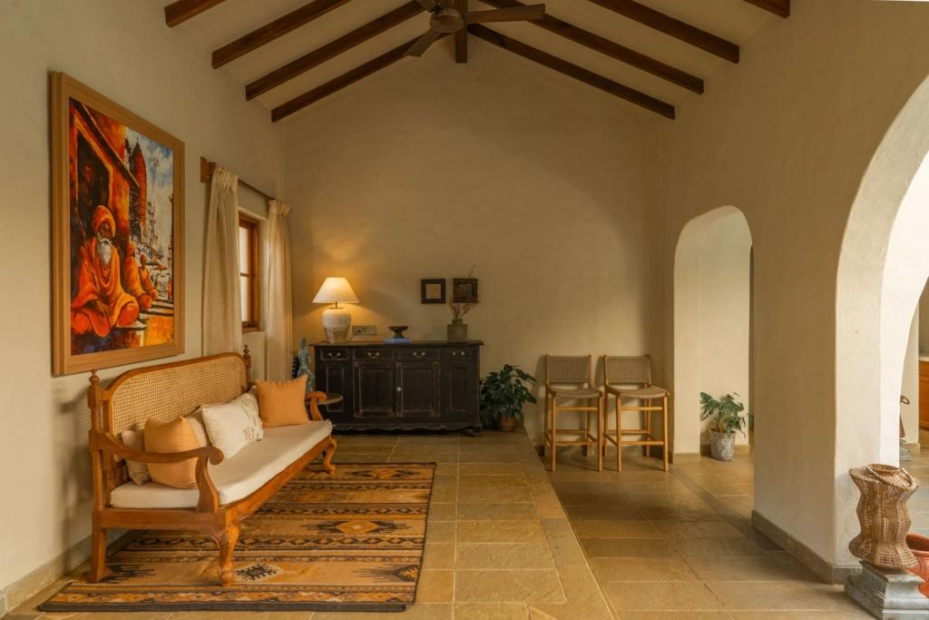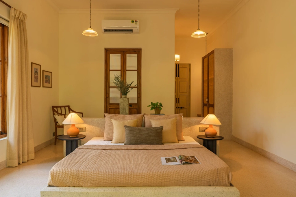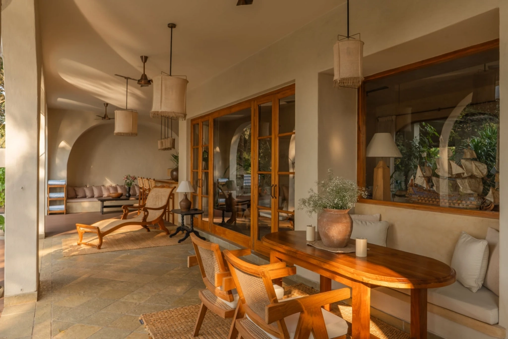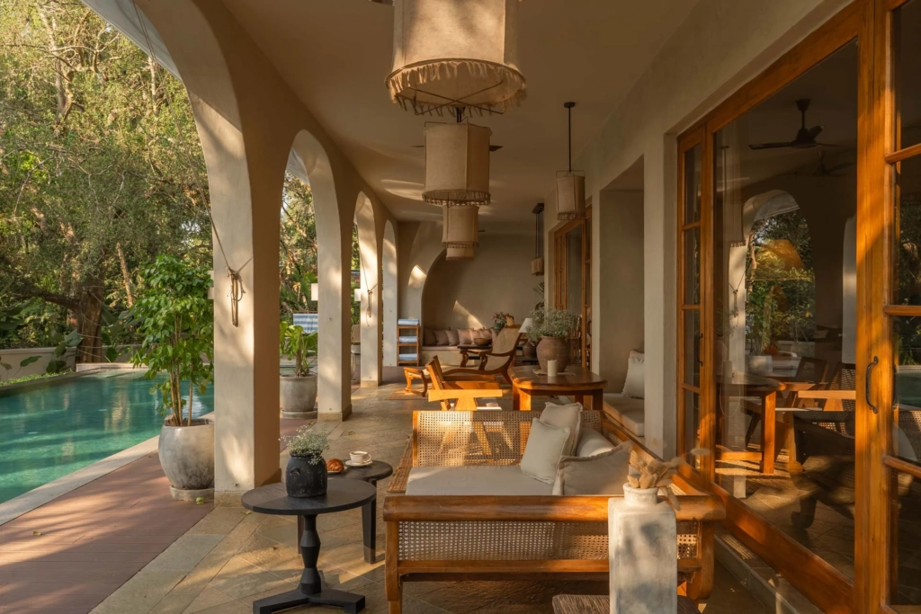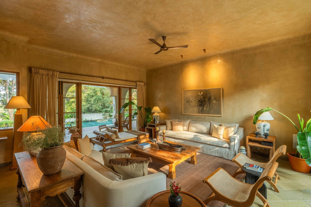 The villa embraces the concept of a nature stay in Goa, where mornings begin with birdsong and evenings melt into soft golden sunsets.